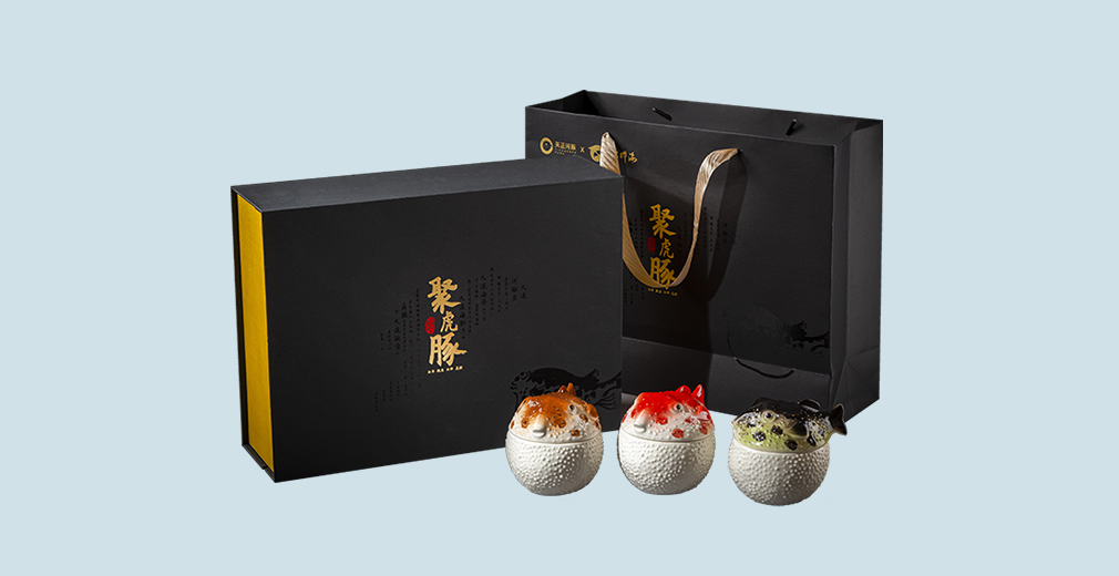 聚虎豚是佛跳墻系的高端快手菜產品,分為三個口味,海膽鮑魚聚虎豚、海參聚虎豚、鮑魚花膠聚虎豚,簡裝精裝兩種包裝